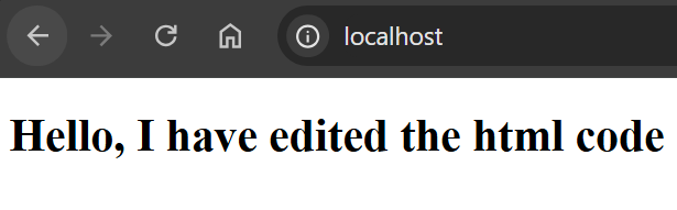 Then go to the html folder, right click the index.html file, and edit it in Notepad. Using basic html, I edited the file to have it say, “Hello, I have edited the html code.”